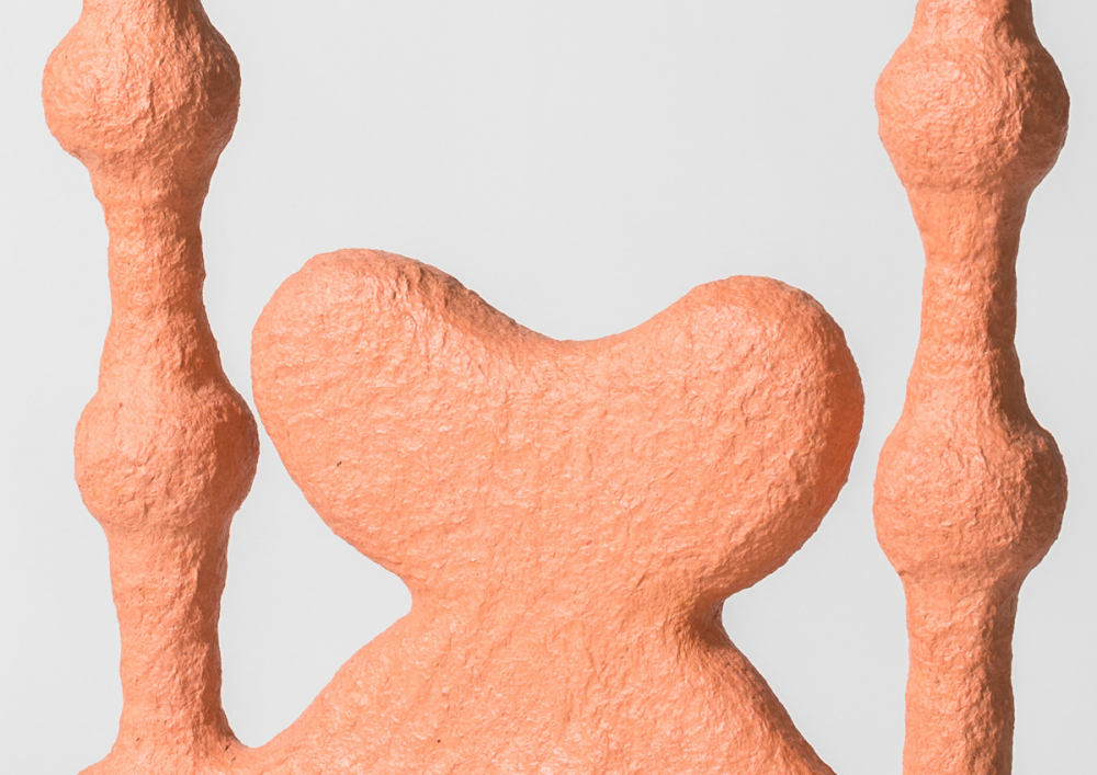 To create the whimsical unique objects seen at KYKLOS collection, Polina Miliou first scouts local flea markets for used furniture, particularly traditional Greek wicker chairs, which she then sculpts by hand in a freeform, improvisational way using a mixture of paper pulp the artist makes herself. Pigment is mixed into the pulp as well (the objects are not painted over), in order to achieve a bright, solid, and durable effect. Each colour vibrates with its own energy, and is referencing the Cycladic sky at different times of the day. The cycle of the sun thus becomes part of the fluid geometric theme the artist has set up for this exhibition.