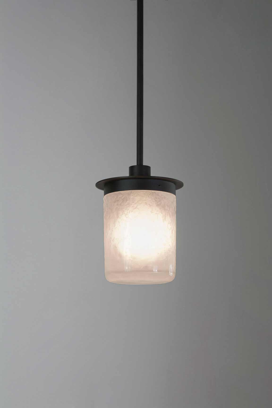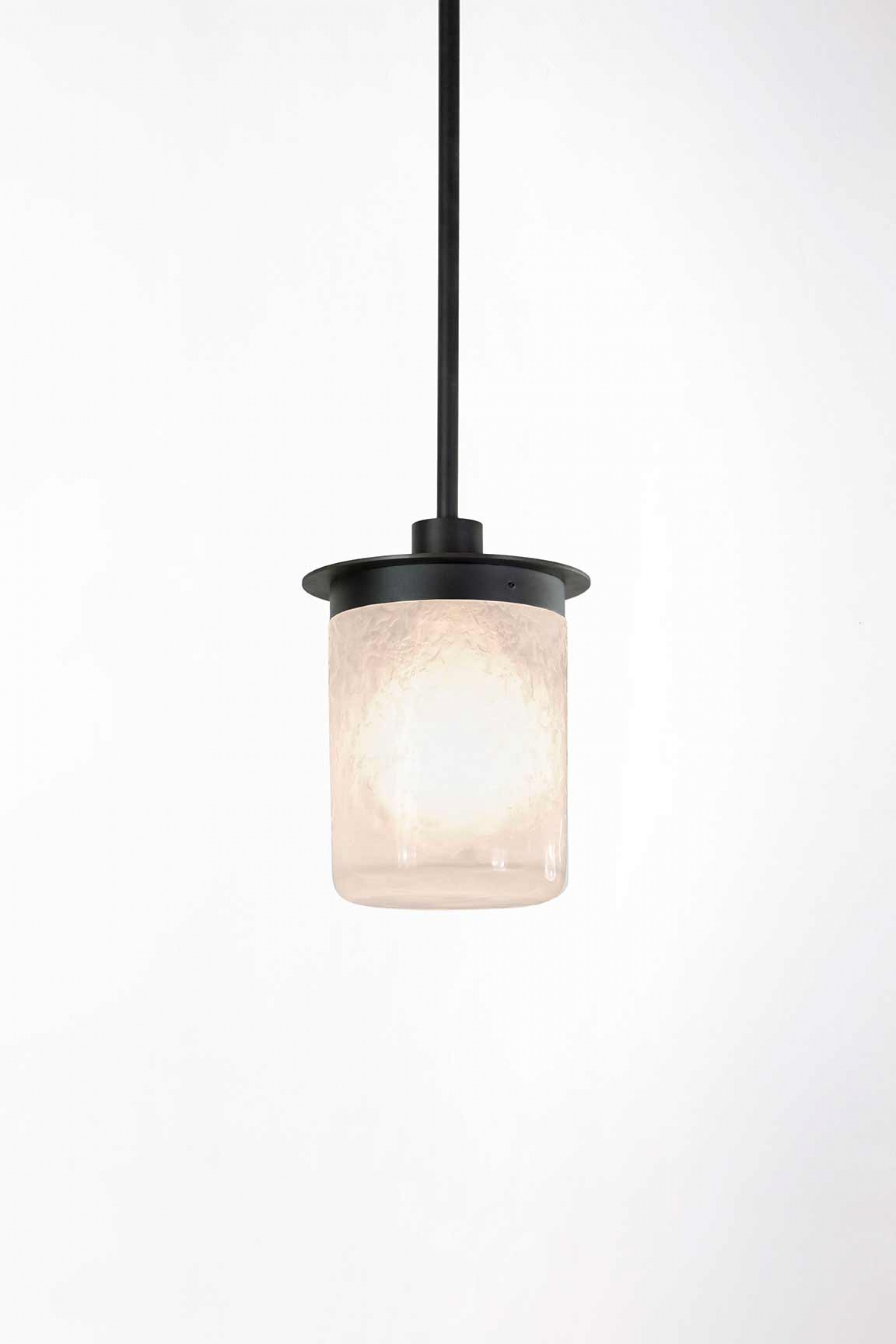 Pendant in lost-wax transparent or grey cast glass, patinated brass structure. Each piece is numbered and signed.