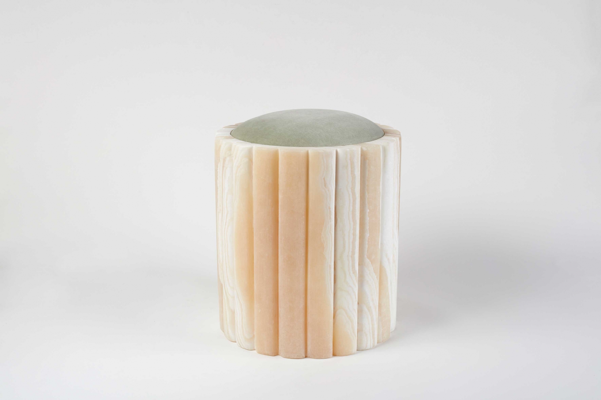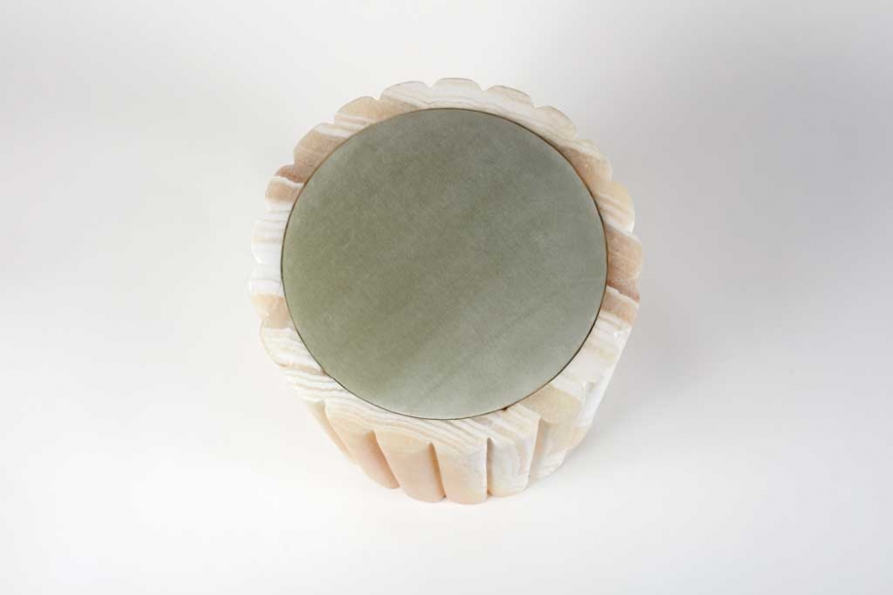 Exclusively introduced at ‘Over the Counter’ showroom during the Beirut design fair 2018 and ‘House of Today’ biennale, the series examines the energy of movement and sensuality inspired by the stone’s ancient healing mystic and soothing swirl like motifs. “the idea was to find an emblematic egyptian mineral and use it to create contemporary objects that would build bridges between past and present, craft and design, earthly and ethereal...”. Says Omar Chakil. ‘Volutes’ is entirely hand made in Egypt merging his egyptian roots with his French aesthetic heritage through sobriety and grace.