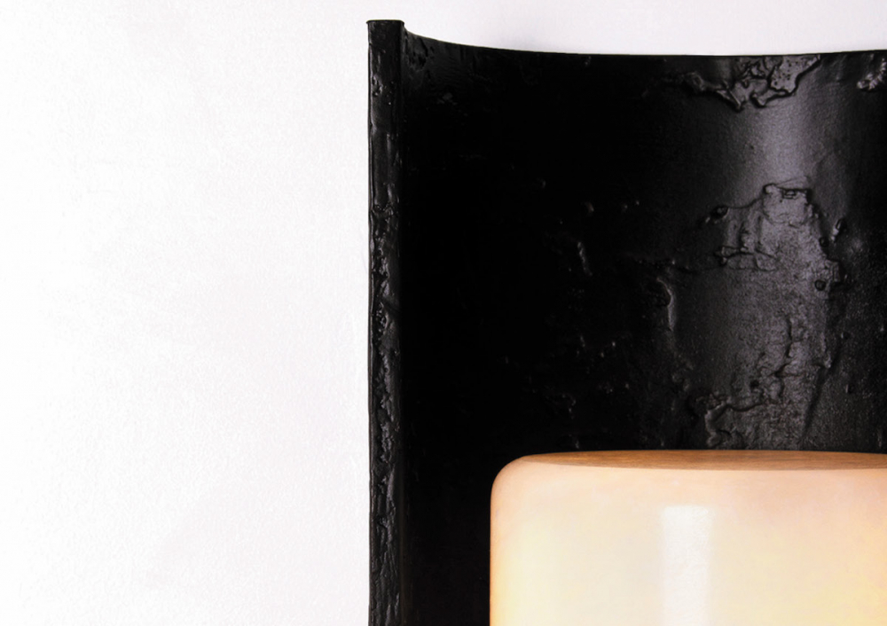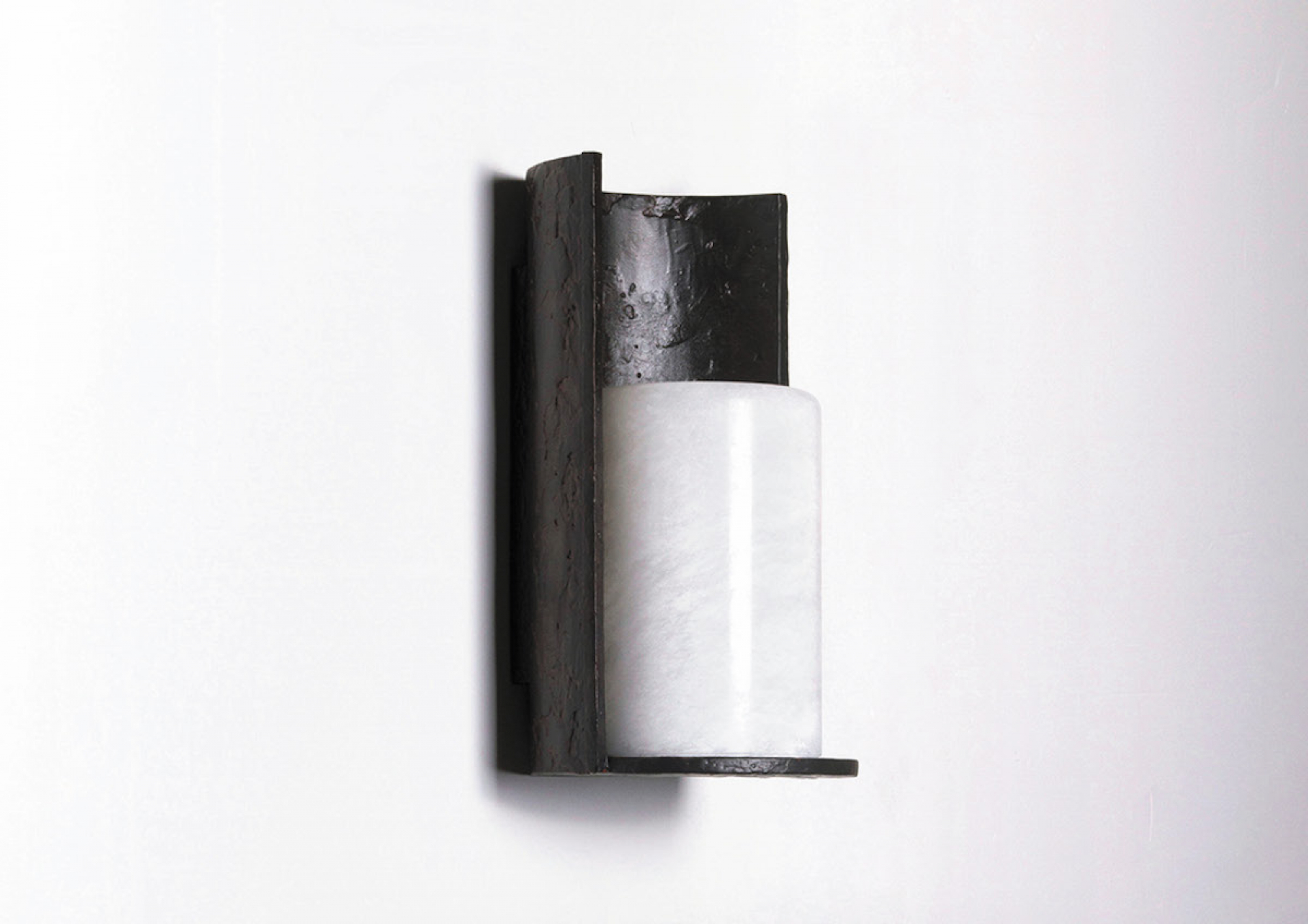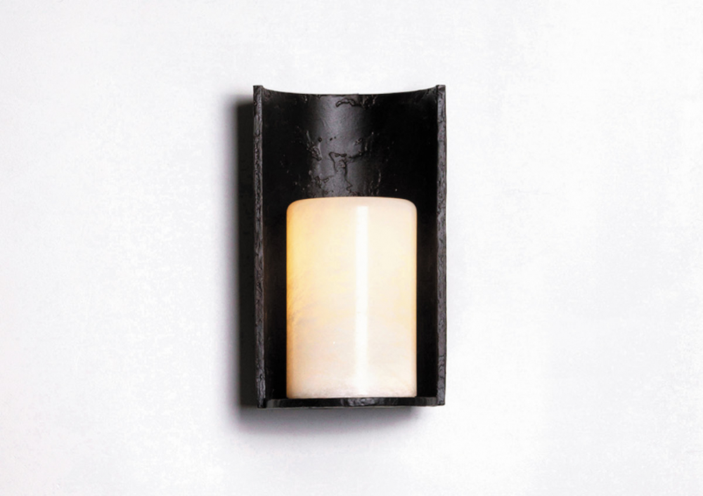 Sconce in lost-wax patinated bronze, with alabaster. Each piece is numbered and signed.