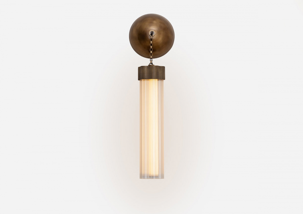 Delphi, a versatile new lighting collection designed by Jamie Gray, is constructed of cast and machined brass paired with fluted glass tubing, paying homage to iconic Greek columns. The proprietary brass chain allows for a variety of lighting configurations and adjustment to suit any ceiling height and multiple use cases. Different finishes available.