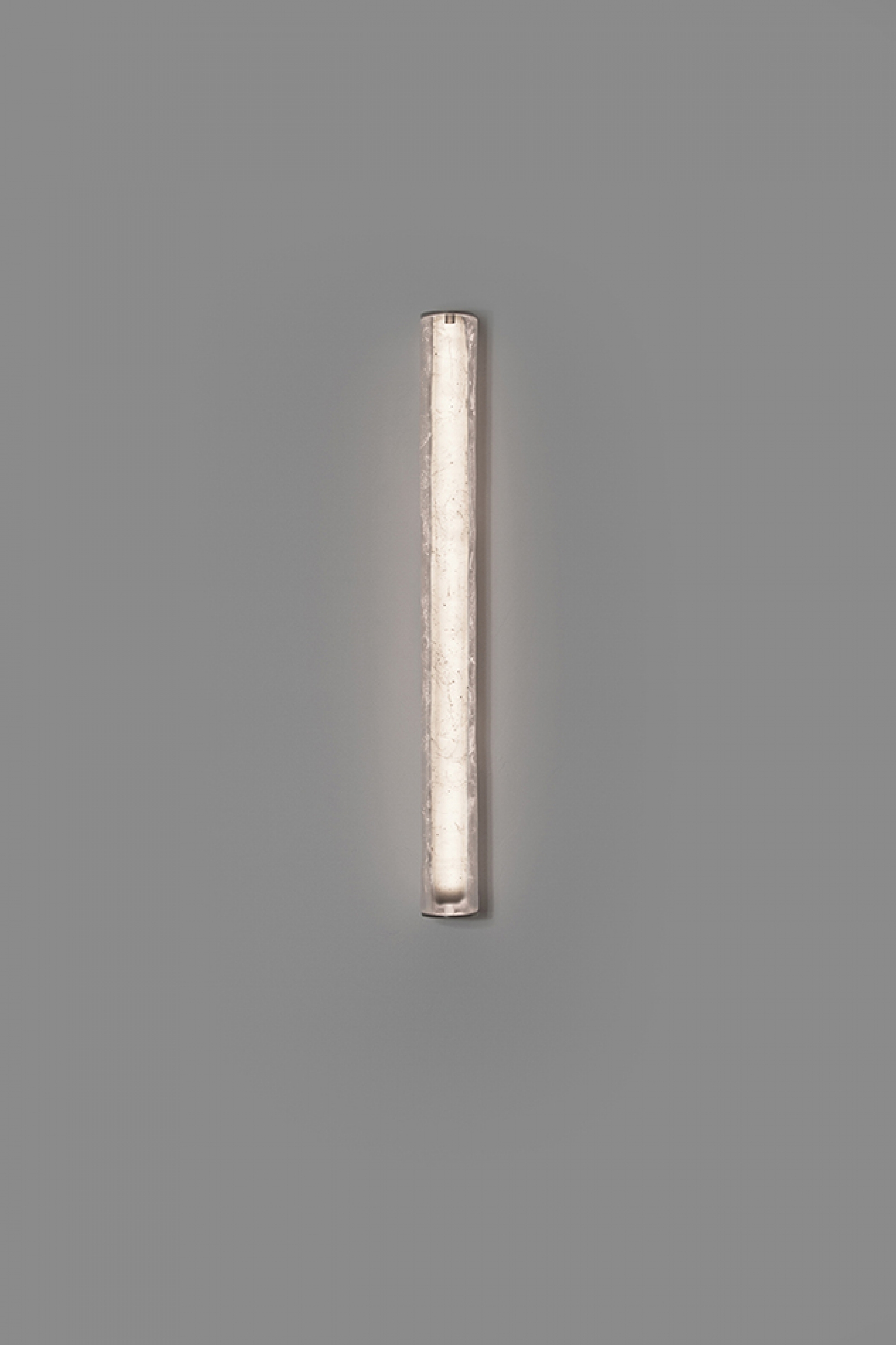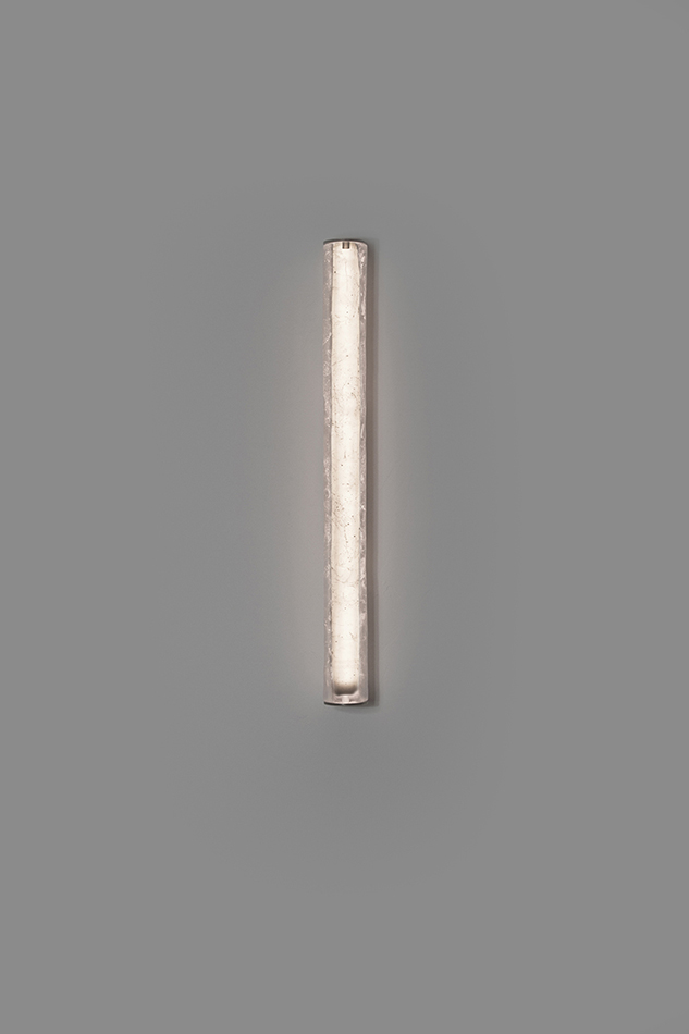 Result from a research on cylindrical shape, EOS collection seeks to highlight lost-wax cast glass inside the most minimal brass structure. It comes in sconces and pendants in various sizes.