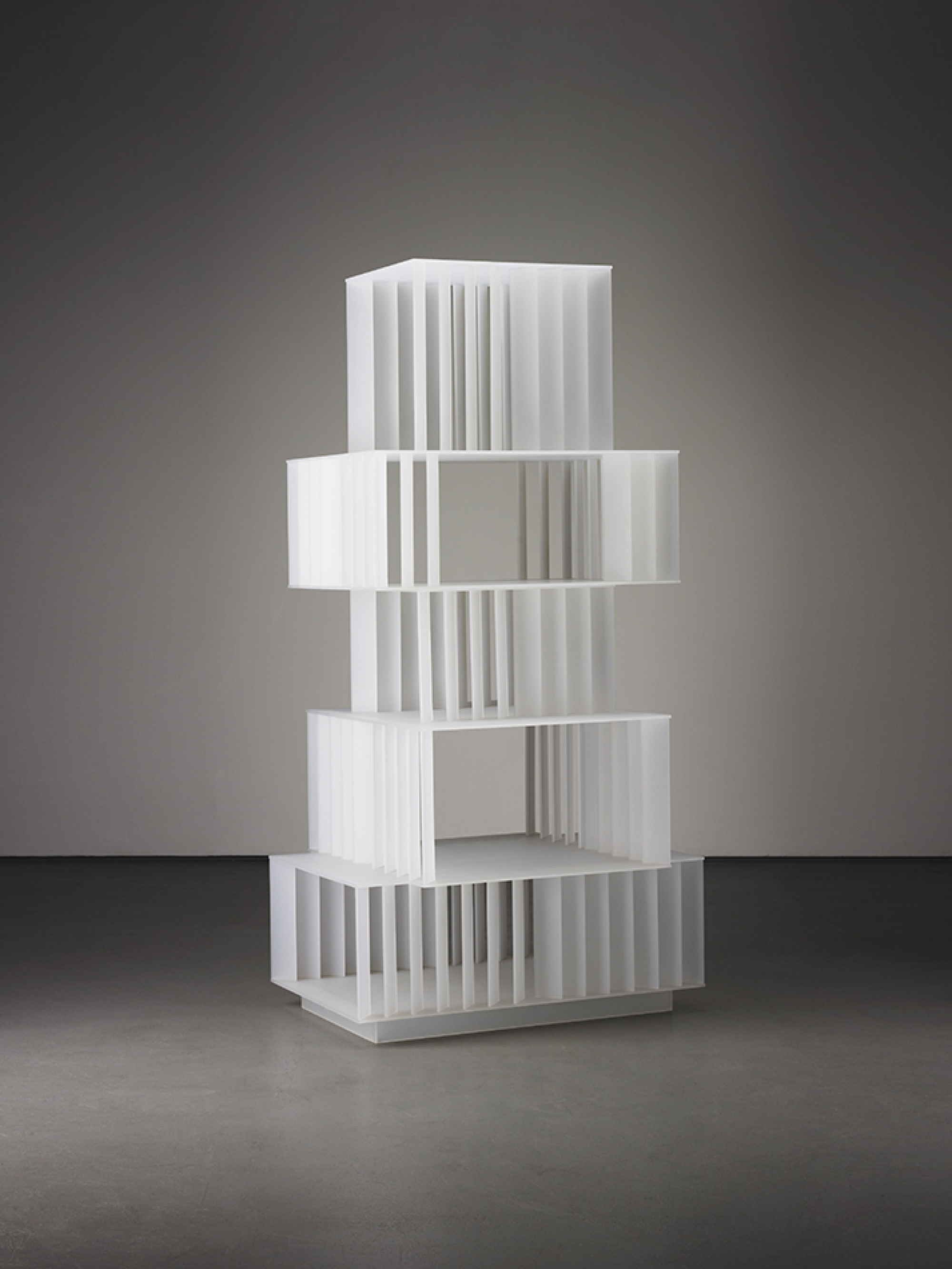 For its premiere collection, exhibited at the 2011 Milan furniture fair, Oeuffice proposed “totems for living”, a series of monolithic objects that dominate the habitat, yet remain entirely functional. These monoliths are inspired by the geometries that govern architecture, and are conceived as domestic altarpieces, infused with a sense of utility, grace and wit. In other words, these “totems” become dominant and narrative objects around which one is invited to stop, to contemplate and to display personal artifacts of importance.
