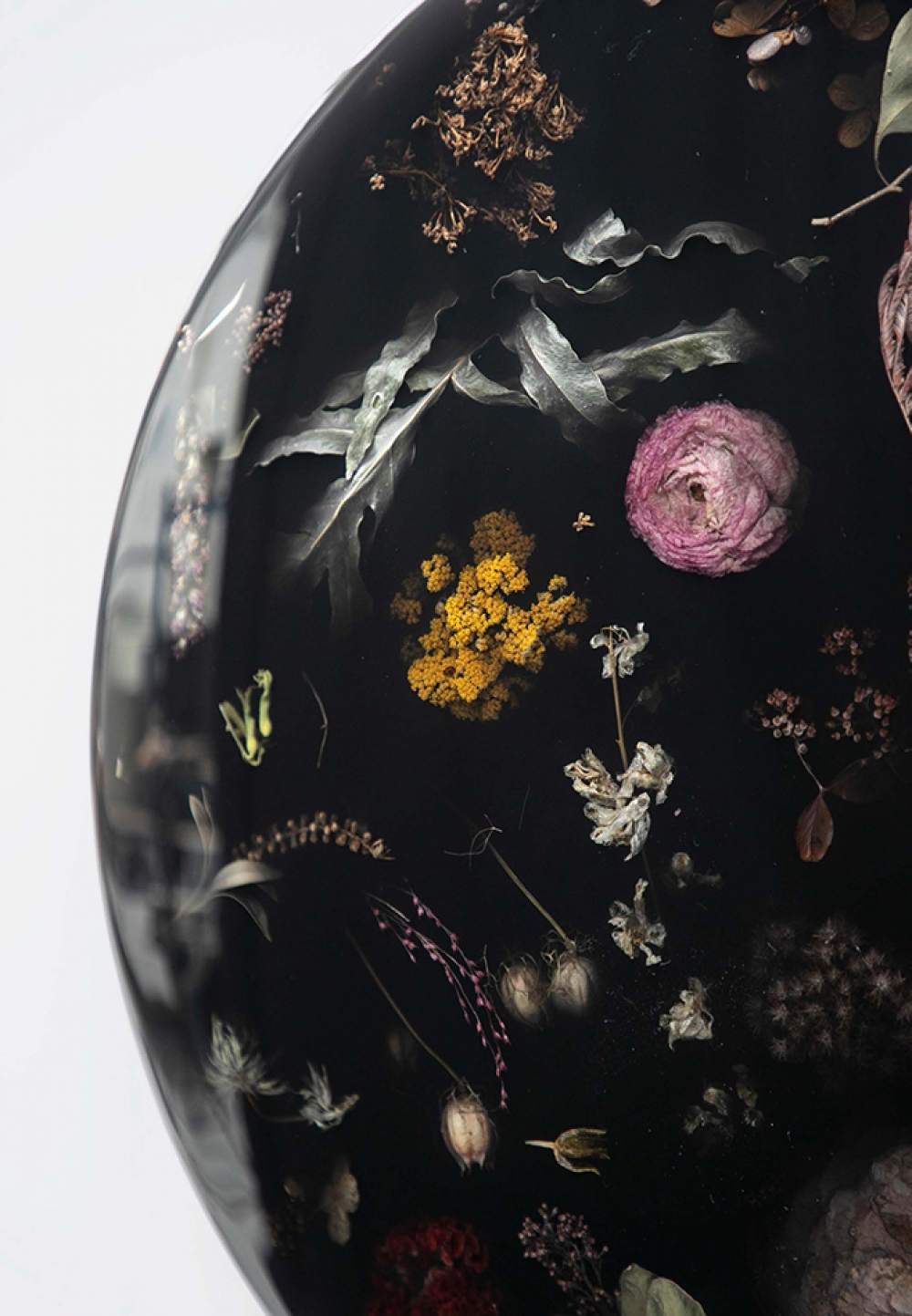 London designer Marcin Rusak has created a collection of furniture and lighting by encasing flowers in resin, then cutting the blocks to reveal the petals inside.Marcin Rusak developed the Flora collection after two years of research into his combined interests in nature and materials. He began by exploring how he could use flowers to create durable and valuable products. Different processes were then applied to produce a variety of effects across the collection. By cutting sheets and 3D forms from the resin, cross sections of the flowers are revealed.