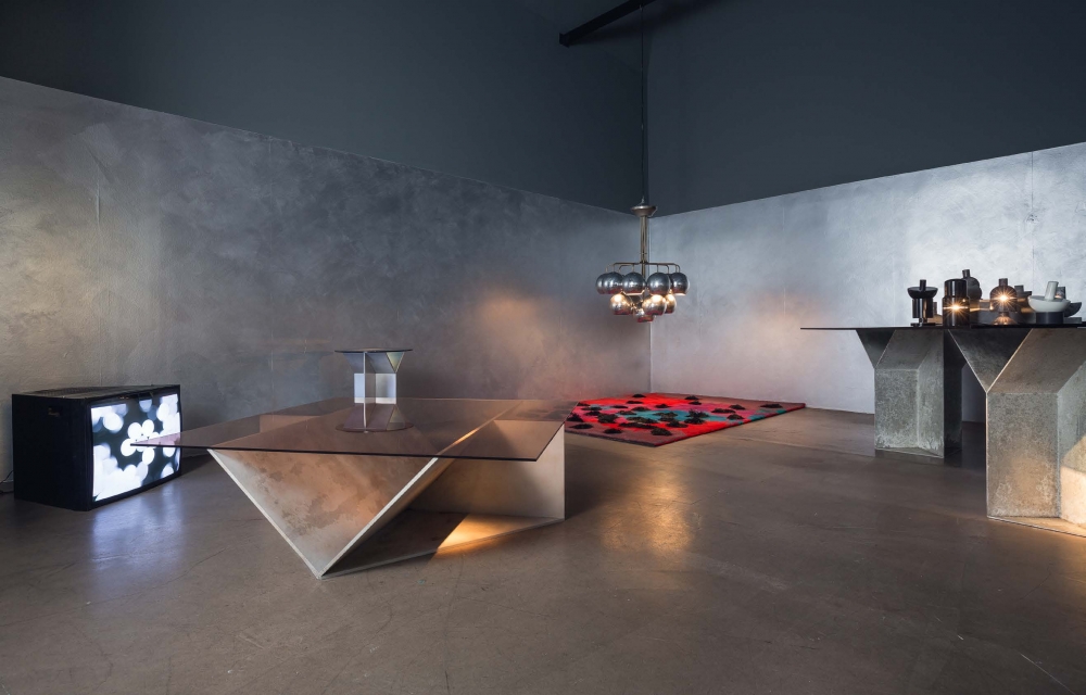 It is possible to customize the objects with different finishes of aluminium (brushed, oxidized red, oxidized blue and polished mirror) with a selection of crystal tempered tops (peach, grey, blue and yellow).