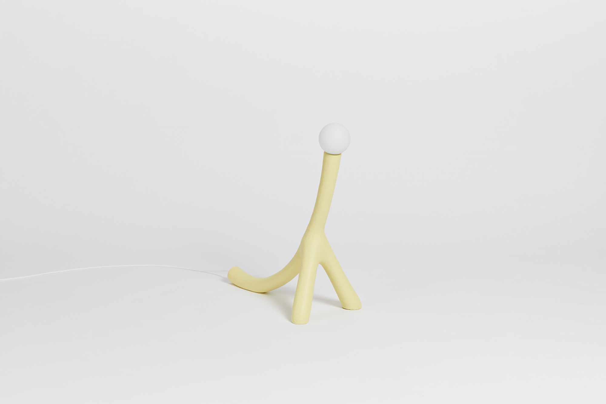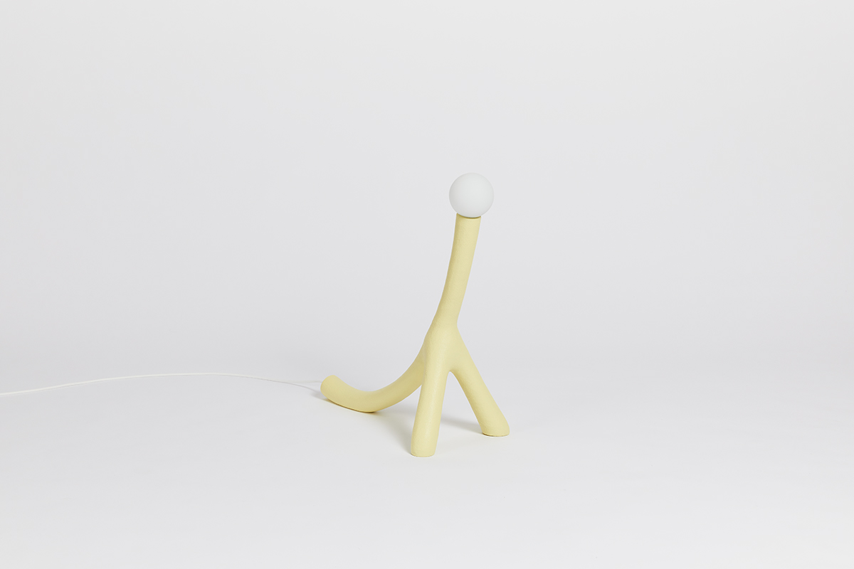 The Hot Wire Extensions series explores alternative processes of making. The innovative technique reuses waste nylon powder from SLS 3D printing, a material currently not recycled. The process starts by building a shape from thin nichrome wire that fits within the dimensions of a cuboid container. The wire is placed inside the box, filled with a mixture of pure silica sand and waste nylon powder. Sand acts both as a filler material, preventing the nylon powder from dripping off the wire, and also as a heat conductor. A battery sends an electric current through the resistant metal, melting the surrounding nylon. The process turns the transient into a solid, seamlessly binding the material to find its own organic, bone-like ideal structure.